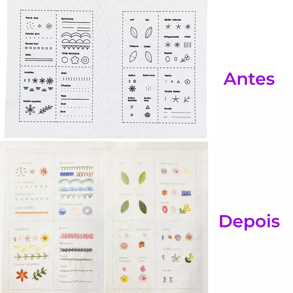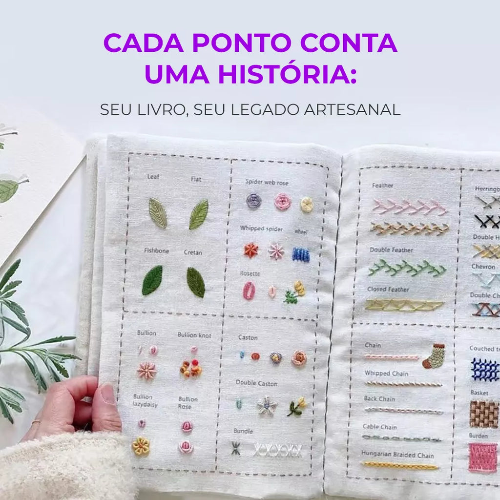 Esse é o detalhe que muda tudo: diferente de livros comuns onde você lê e depois tenta fazer em outro lugar, no BordArte a prática acontece dentro do próprio livro. Cada ponto que você domina fica registrado nas páginas de tecido, e com o tempo, o seu livro vira uma peça artesanal única, personalizada com a sua mão. É aprendizado que vira coleção.